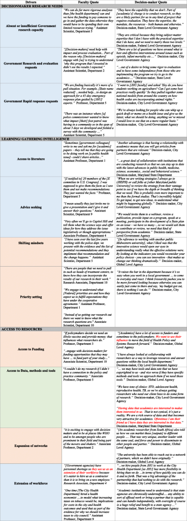 Table 3 Drivers for engagement between academic faculty and government decision-makers